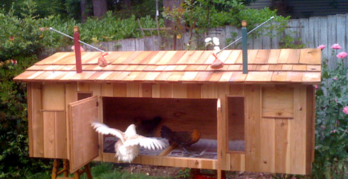 The third chicken house was sketched out on paper more than a month ago. During the time it took me to turn the rough sketch into an 8’x3′ henhouse, an entire 4000-square foot home on the lake below us caught fire, was razed and reconstructed.